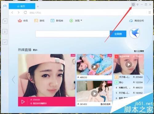 2、在迅雷9的网页式窗口中,点击右侧工具栏的“皮肤”按钮。如图所示;