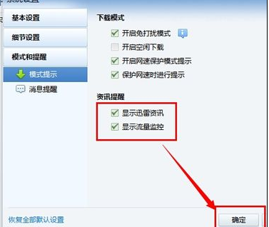 选中常规——在显示迷你迅雷看看前打勾——点击确定;