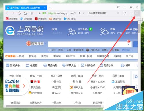 2、在打开的浏览器界面,点击右上角的“三横”菜单选项。如图所示;