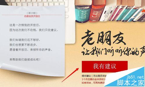 5、点击我有建议,随便写点什么,就可以免费得一个月的迅雷白金会员。