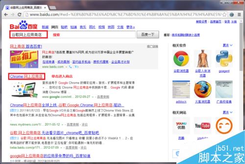 百度搜索“谷歌网上应用商店”,单击相应链接进入商店。