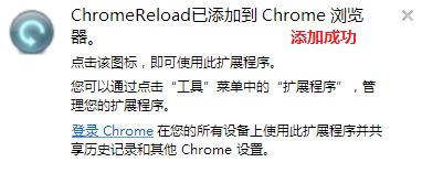 浏览器会自动下载并安装,稍等片刻,出现如下图所示信息,表明ChromeReloader插件安装成功。