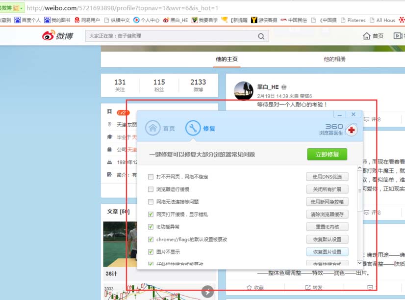 6、打开浏览器,再打开刚才的微博界面,现在的微博界面就被修复了。我们现在又可以愉快的玩微博了。
