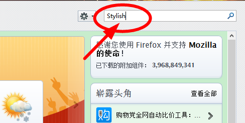 2、点击获取附加组件,并在出现的网页的搜索栏中输入Stylish,并搜索