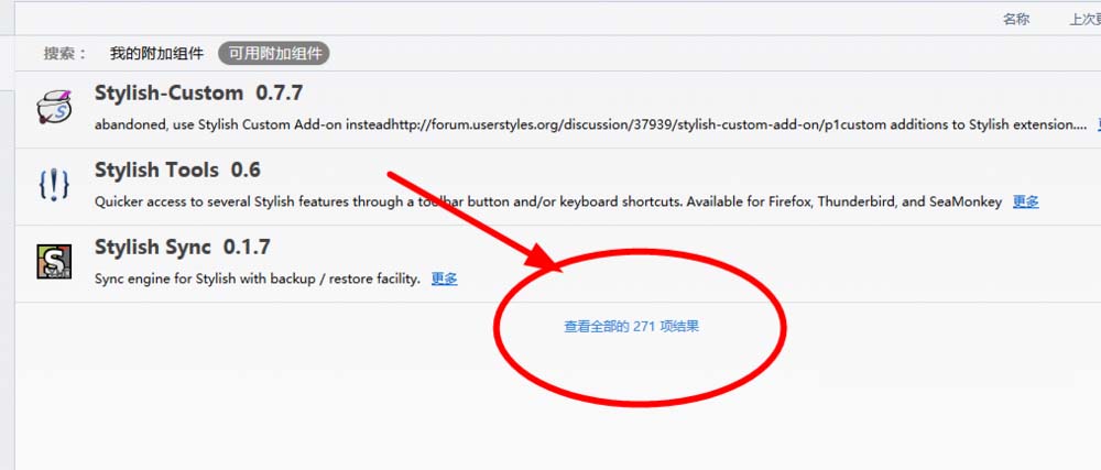 3、搜索之后可能出现的结果并不很多,这时我们点击查看全部的结果,在新出现的网页中找到Stylish,并添加。