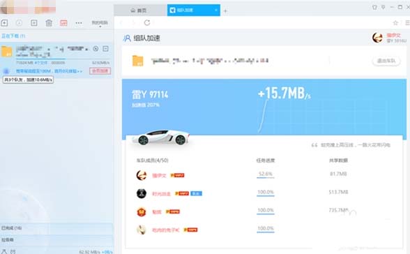 6、其实这种车队就是一种下载同一个任务的迅雷用户,可以选择加入该任务的车队,加入车队后车队成员将实现数据的定向互传----互相传输自己已下载而队友未下载的数据块,从而大幅度提升车队所有成员的下载速度。