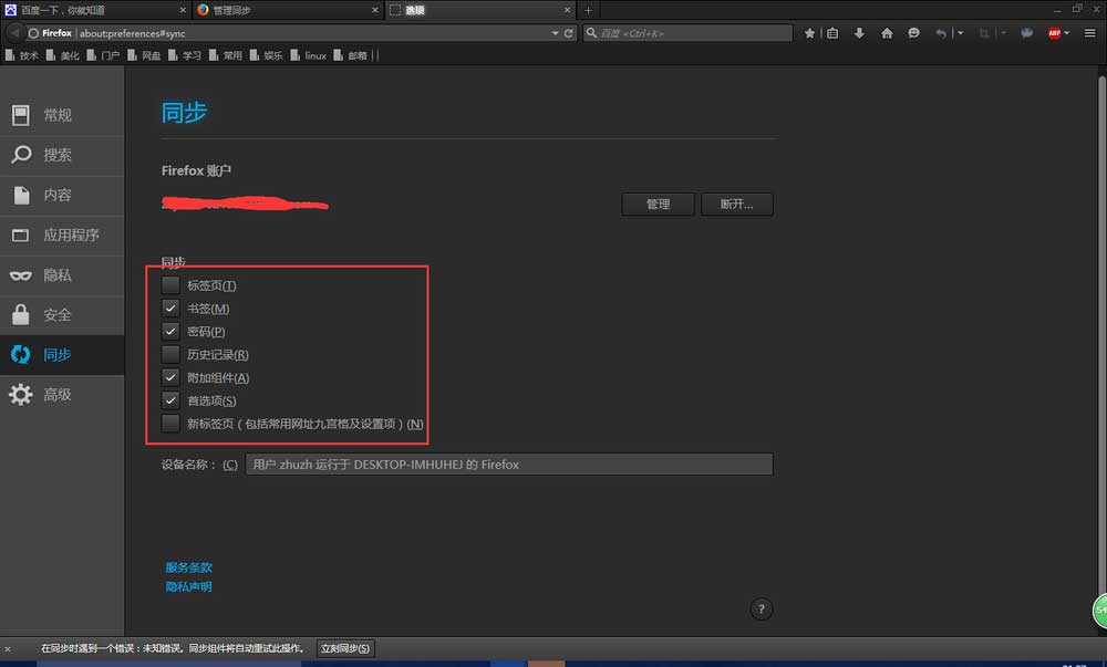 火狐浏览器自动同步书签/密码等设置教程: