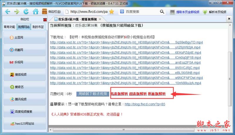 硕鼠是一款最稳定的FLV视频下载器,提供土豆,优酷,我乐,酷六,新浪,搜狐,CCTV等55个主流视频网站的解析+下载+合并/转换一条龙服务。不过,也有很多用户反应用硕鼠下载视频有的不清晰,虽说并不影响观看,但是大家都是比较喜欢看更清楚的视频吧。那么,硕鼠如何下载超清/高清/标清视频呢?下面就让我们一起去看看吧。