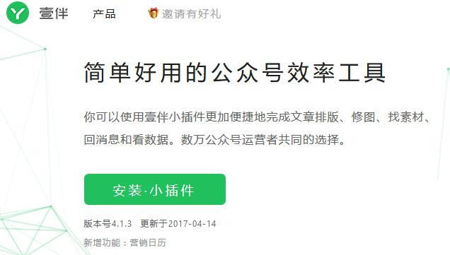 壹伴小插件是一款简单好用的公众号效率工具,你可以使用壹伴小插件更方便的完成排版,轻松找到各类素材,轻松运营多个公众号,它还具备修图、回消息、看数据、关键词消息提醒、一键转载等功能,是每个公众号运营者的首选。