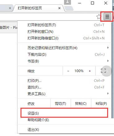 2、打开chrome浏览器,如下图所示,依次点击自定义控制菜单>>设置按钮。