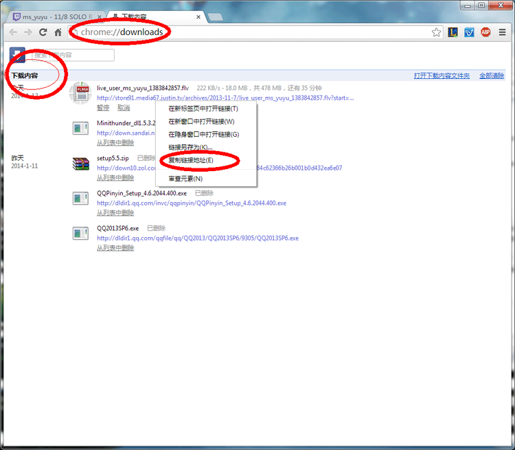 6、点击保存,然后找到“下载内容”,复制下载地址(当然你用google 浏览器下载也可以,不过不支持断点续传,所以还是建议使用迅雷下载。)