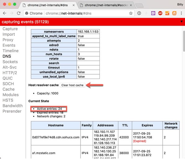 在地址栏中执行以下 URL:chrome://net-internals/#dns