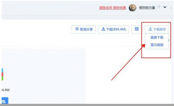 安装完脚本后在百度网盘下载页面,会看到右边多了一个下载助手的按钮,点开后有直接下载和显示链接,你想用浏览器直接下载还是用迅雷或者qq旋风下载就随你便了。