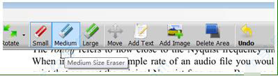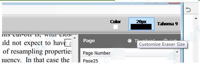 PDF橡皮默认程序供应3不同大小的橡皮擦。如果你需要更准确的橡皮擦大小,只需点击第二个工具栏按钮显示“20 px”,“60 px”或“100 px”在正确的球门上角,然后你可以调整橡皮擦大小准确1像素的新窗口。