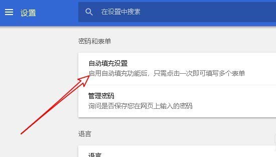 5、在右侧打开的密码和表单设置框中找到“自动填充设置”快捷链接。
