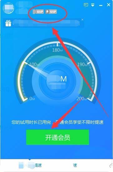 3、开通会员界面,可以选择下行提速和上行提速。