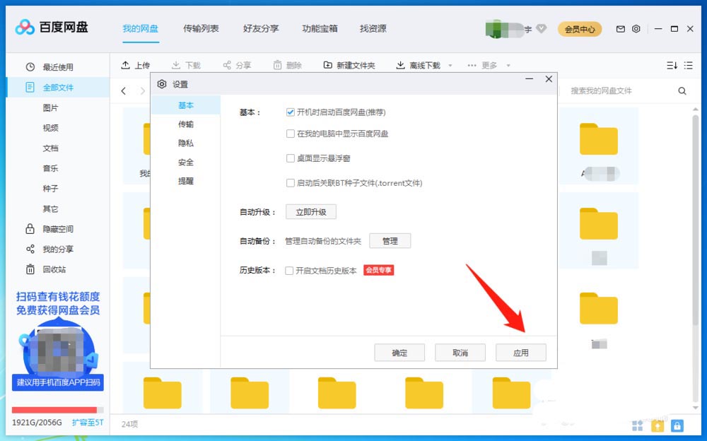 3、在基本选项下面,勾选“开机时启动百度网盘”;