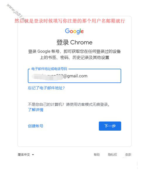 登录的话账户名填写你注册时填的@gmail.com的那个