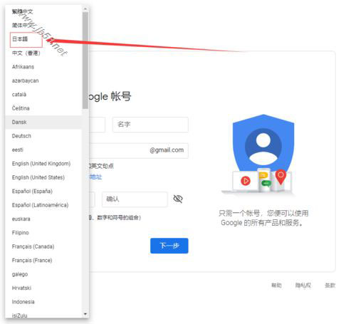 进入到注册页面后,点击左下角,然后切换至日本语言