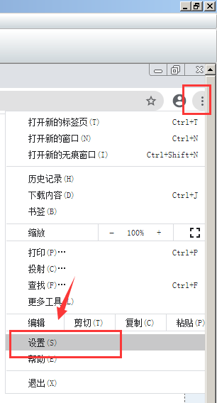1、打开chrome谷歌浏览器右上角的三个点就是“自定义及控制”按钮,选择“设置”选项