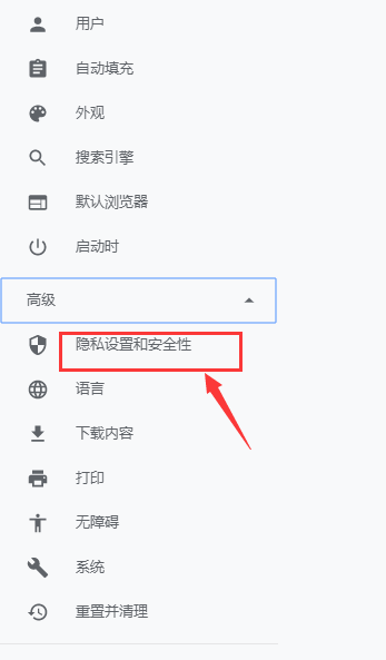 2、chrome正式版 “高级”->“隐私设置和安全性”->“网站设置”