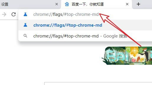 2、这时我们在地址栏输入如下网址chrome://flags/#top-chrome-md