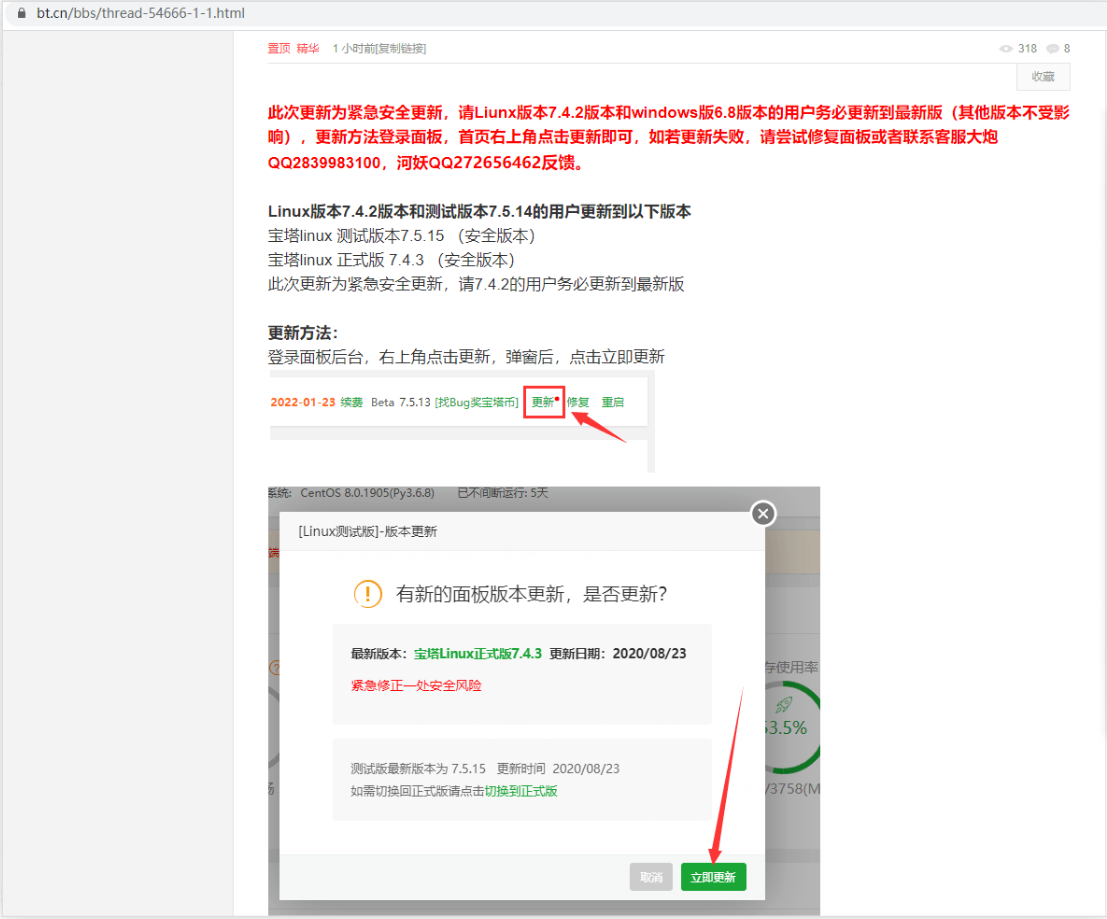 4. 官方公告 https://www.bt.cn/bbs/thread-54666-1-1.htm...