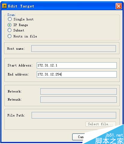 图2 设置扫描的IP范围