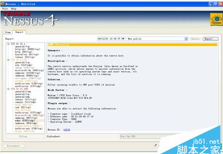 Nessus是一个功能强大而又易于使用的远程安全扫描器。安全扫描器的功能是对指定网络进行安全检查,找出该网络是否存在有导致对手攻击的安全漏洞。该系统被设计为client/sever模式,服务器端负责进行安全检查,客户端用来配置管理服务器端。在服务端还采用了plug-in的体系,允许用户加入执行特定功能的插件,这插件可以进行更快速和更复杂的安全检查。在Nessus中还采用了一个共享的信息接口,称之知识库,其中保存了前面进行检查的结果。检查的结果可以HTML、纯文本、LaTeX(一种文本文件格式)等几种格式保存。