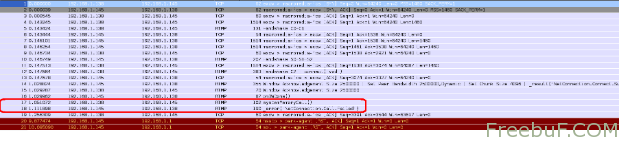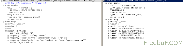 第一个猜测是在systemMemoryCall()的响应解析时可能会触发漏洞,但是我们的RTMP服务器没有识别到该函数的调用,而且返回了一个AMF的错误信息。进一步测试我们捕获受感染机器与RTMP服务器之间的RTMP通信,如下图: