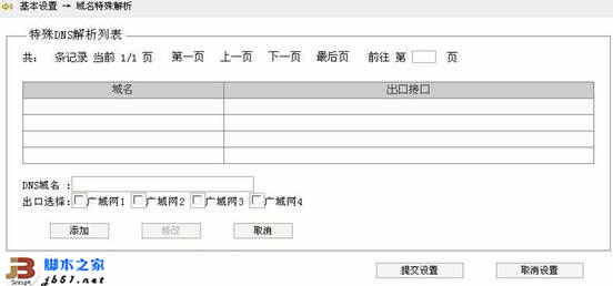二、域名特殊解析,H3C路由基本设置中有一项域名特殊解析功能,主要是用来将一些特定的域名绑定到指定的线路上出去,进入H3C路由基本设置-域名特殊解析,打开基本设置-域名特殊解析,将出现如图所示列表。