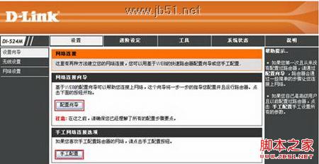 从这个界面可以看到,可以通过两种方法对路由器进行网络连接的设置:一是使用配置向导,二是使用手动配置。下面针对配置向导的使用进行说明。