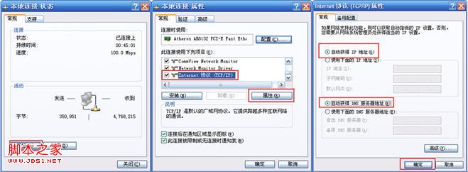 Windows 2000/XP系统:双击电脑桌面右下角的本地连接“小电脑”图标 (若电脑右下角没有网卡图标,进入方法为“开始--控制面板--网络连接--双击本地连接”),然后按照下图进行配置即可。