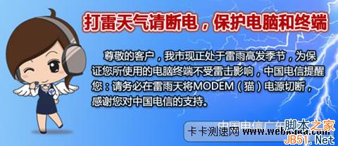 今天,上网时电信给我弹出一个小窗口,提示在雷雨天将MODEM(猫)电源切断,看来雷雨天要拨号上网,真的需要抱着侥幸的心理呀!