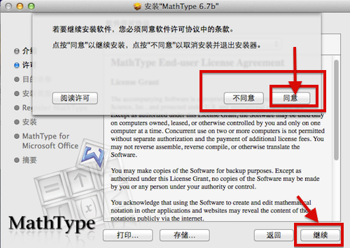 第五步:会弹出提示窗,要求同意软件许可协议,点击同意,选择继续,如下图所示:
