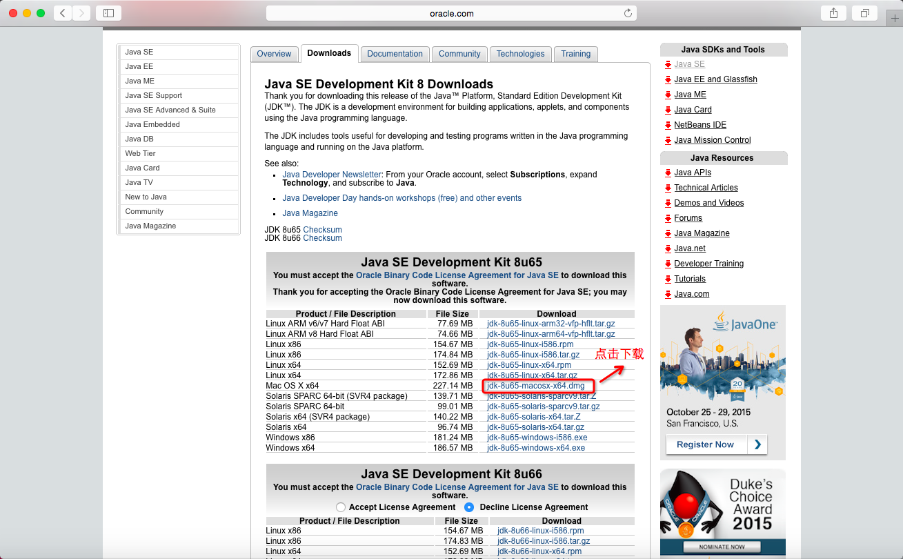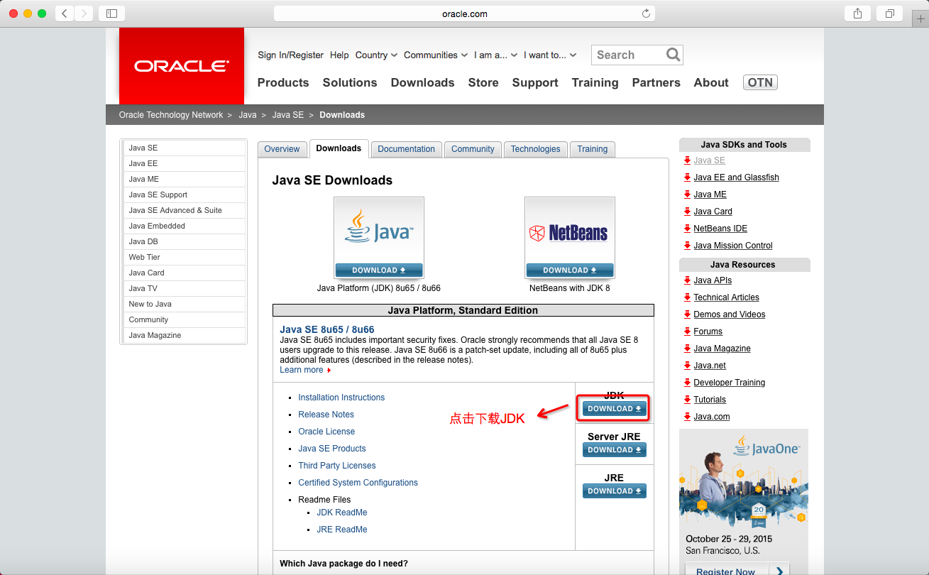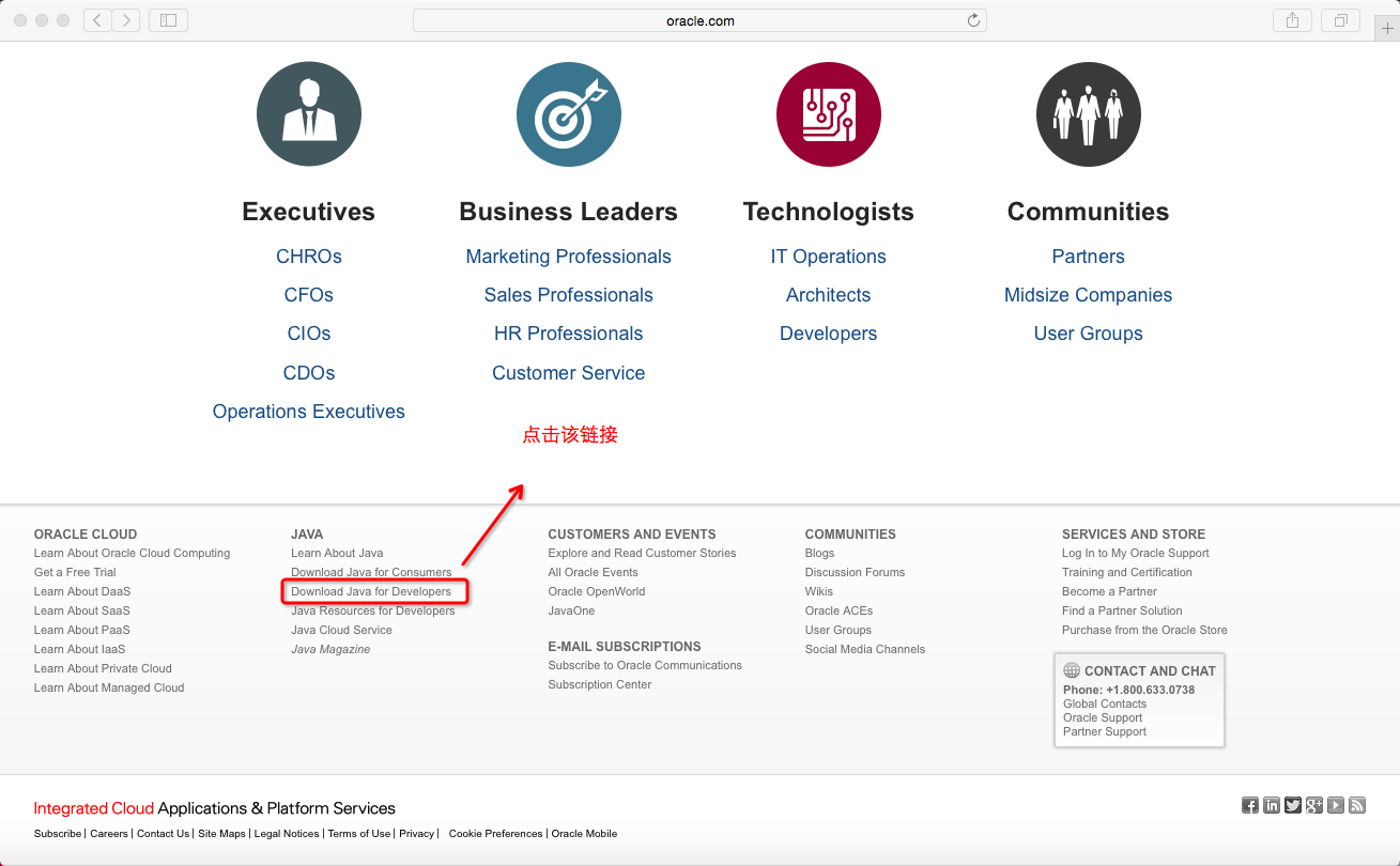 访问Oracle官网 http://www.oracle.com,浏览到首页的底部菜单 ,然后按下图提示操作: