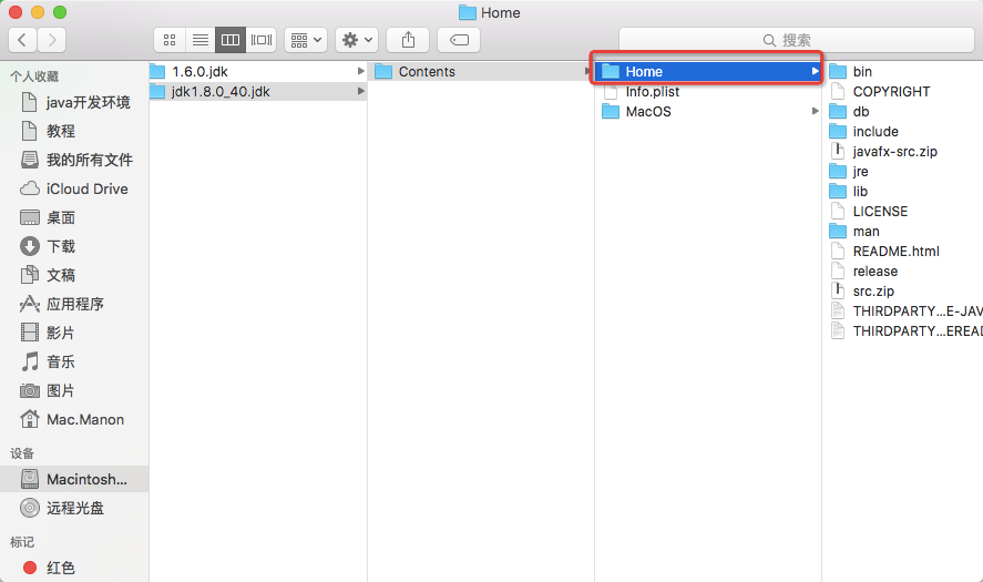 6.其中Contents下的Home文件夹,是该JDK的根目录。