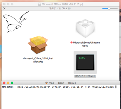 2.把解压的MSO15.112Patch exec文件拖进终端;