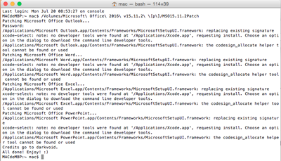 装完Xcode后重新把把解压的MSO15.112Patch exec文件拖进终端;