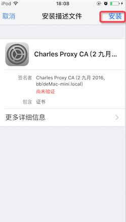 由于是https的请求,需要在手机端安装证书才可以解密请求,charles的证书可通过手机浏览器安装,手机浏览器访问http://chls.pro/ssl,点继续访问此网站,会提示安装证书。