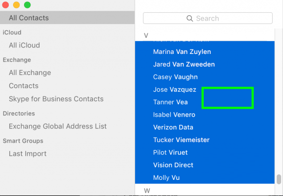 1.打开联系人并选择要传输的联系人(Command + A以选择全部)