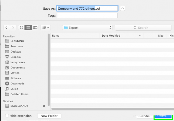 5.您的联系人已导出到广泛支持的.VCF文件。