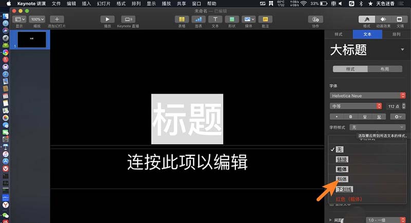 keynote文稿想要给字体设置样式,该怎么设置倾斜字体呢?下面我们就来看看详细的教程。
