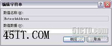 00-10-5C-B9-30-A8   第3步,在NDI\params中新建“NetworkAddress”项,在该项下新建“Default”字符串值,键值为刚刚修改的MAC地址。   第4步,再新建ParamDesc字符串,用于对NetworkAddress项进行描述,其值可设置为“Network Address”。以后,就可以在网卡属性的“高级”选项卡中的“Network Address”项直接修改MAC地址。     第5步,关闭注册表,重新启动启动计算机,新的MAC地址生效。