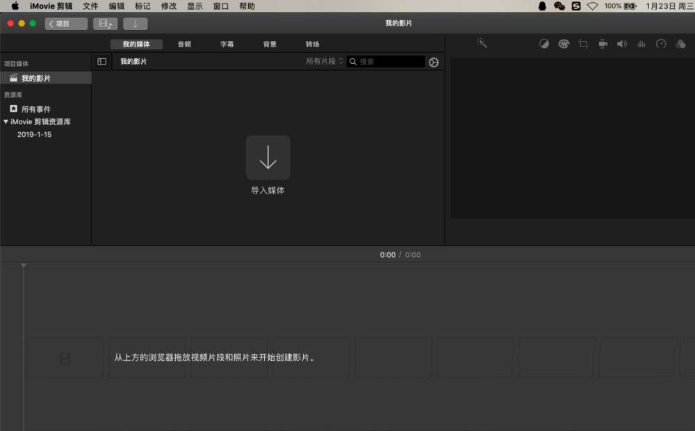2、注意,这个时候是不能新建任何东西的。必须导进去一个视频片段。