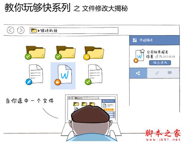 在够快桌面客户端侧边栏的将文件修改更新与文件及文件夹的讨论有机结合、“动态”呈现,让整个协作过程有迹可循。便于快速定位文件修改的历史版本和与之相关的讨论信息。