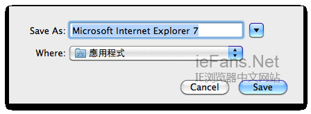 6、点击以后,它会询问你要将此IE程序保存在哪里,请将位置改为应用程序。