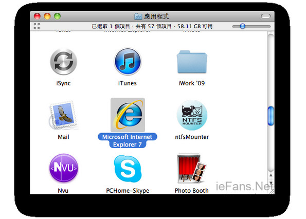 12、回到应用程序里就可以看见你刚刚封装的IE7,请别客气把它点开来。