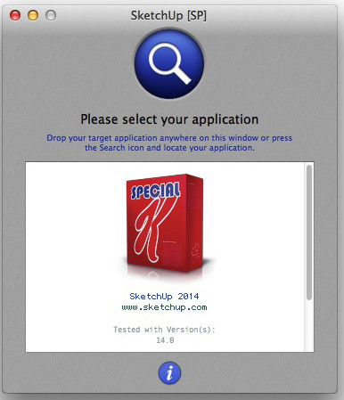 第三部、打开 SkechUp Pro2014 SP,运行其中的—— SkechUp 14.X[SP] 程序,界面如下图所示。将Launchpad里面的 SketchUp 拖到框内,软件会自动将其破解,看到Successfull的提示之后预示着破解成功了。