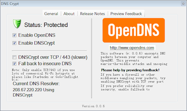 有一款软件可以解决这个问题。OpenDNS发布的软件DNSCrypt,可以加密DNS请求和返回,保证DNS返回值不被篡改和污染,让我们得到正确的DNS查询返回值。软件有Windows版本和Mac OS版本,下载地址如下: